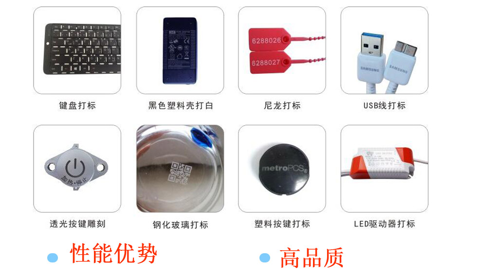 532nm输出波长减少了对加工件的热影响;振镜式高精度打标头,打标效果精细并可重复加工;高精度细致光斑保证打标结果的完美;打标过程非接触,打标效果永久性。